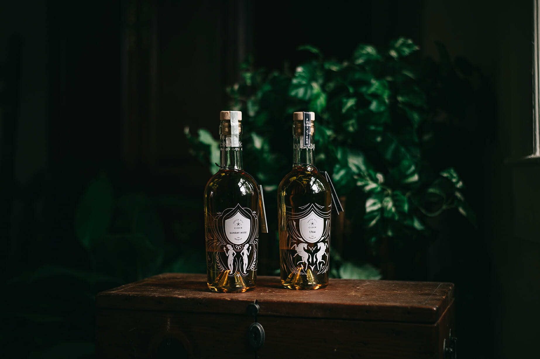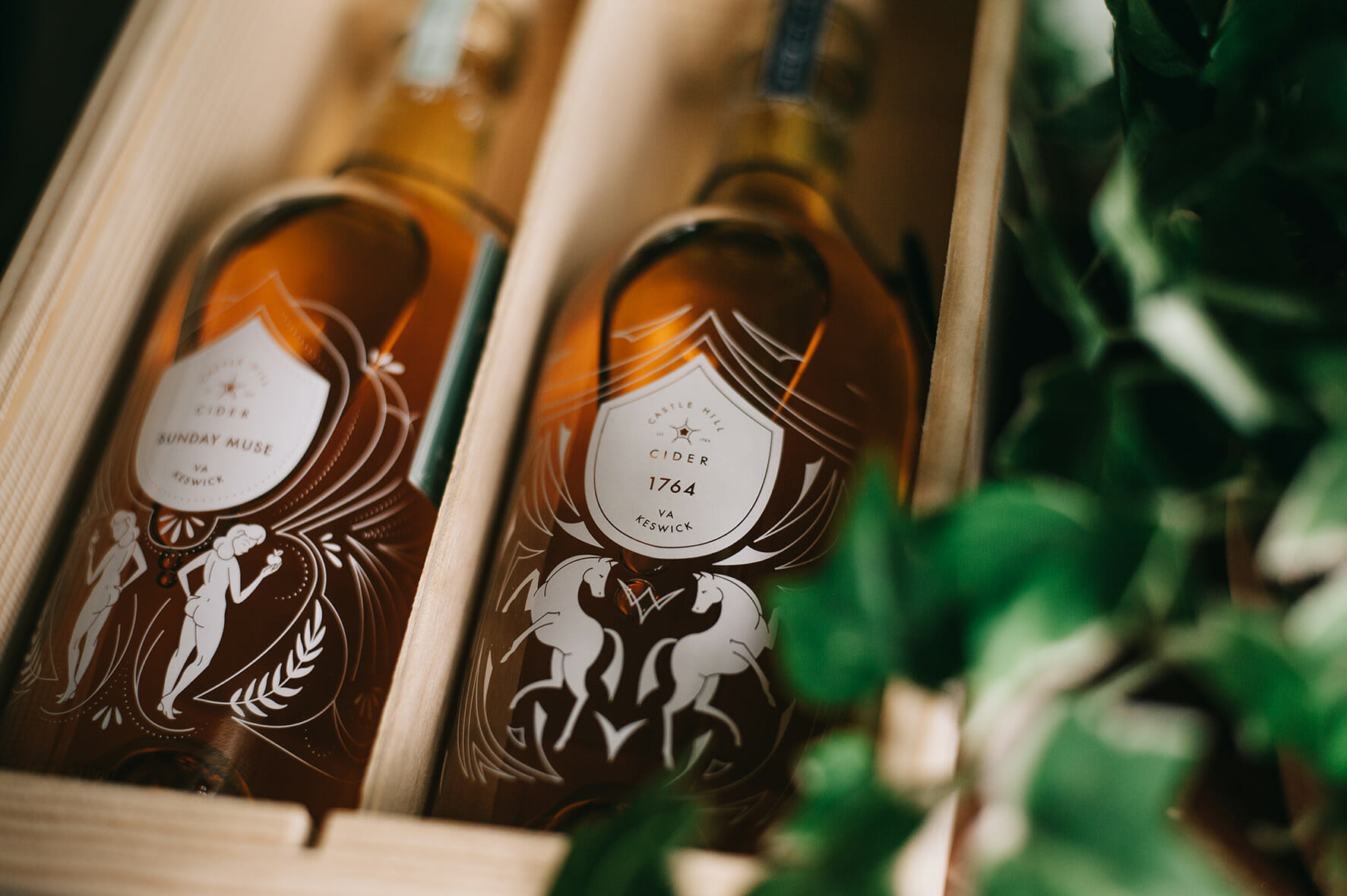 As new additions to the Castle Hill Cider portfolio, these cider ports & pommeaus were elevated into screenprinted bottles. The pommeaus feature a logo-shaped cut-out in the center of the design that allows you to peer through the liquid. The ports were designed with custom illustrations to visually tell the story of Castle Hill. Sunday Muse spotlights a past inhabitant, Amelie Louis Rives Troubetzkoy, and 1764 highlights the area's equine history.