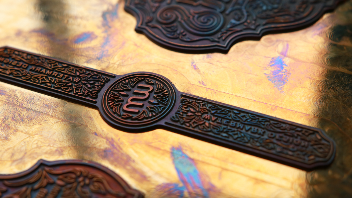 Designer dreams became reality with this letterpressed rose flavored vodka label design. We took our custom, hand-lettered cheers illustration and turned it into the packaging for this lovely liquid. Behind the bottle you can see the brass plate used on the press. A dream project - hand wrought from pen to press.