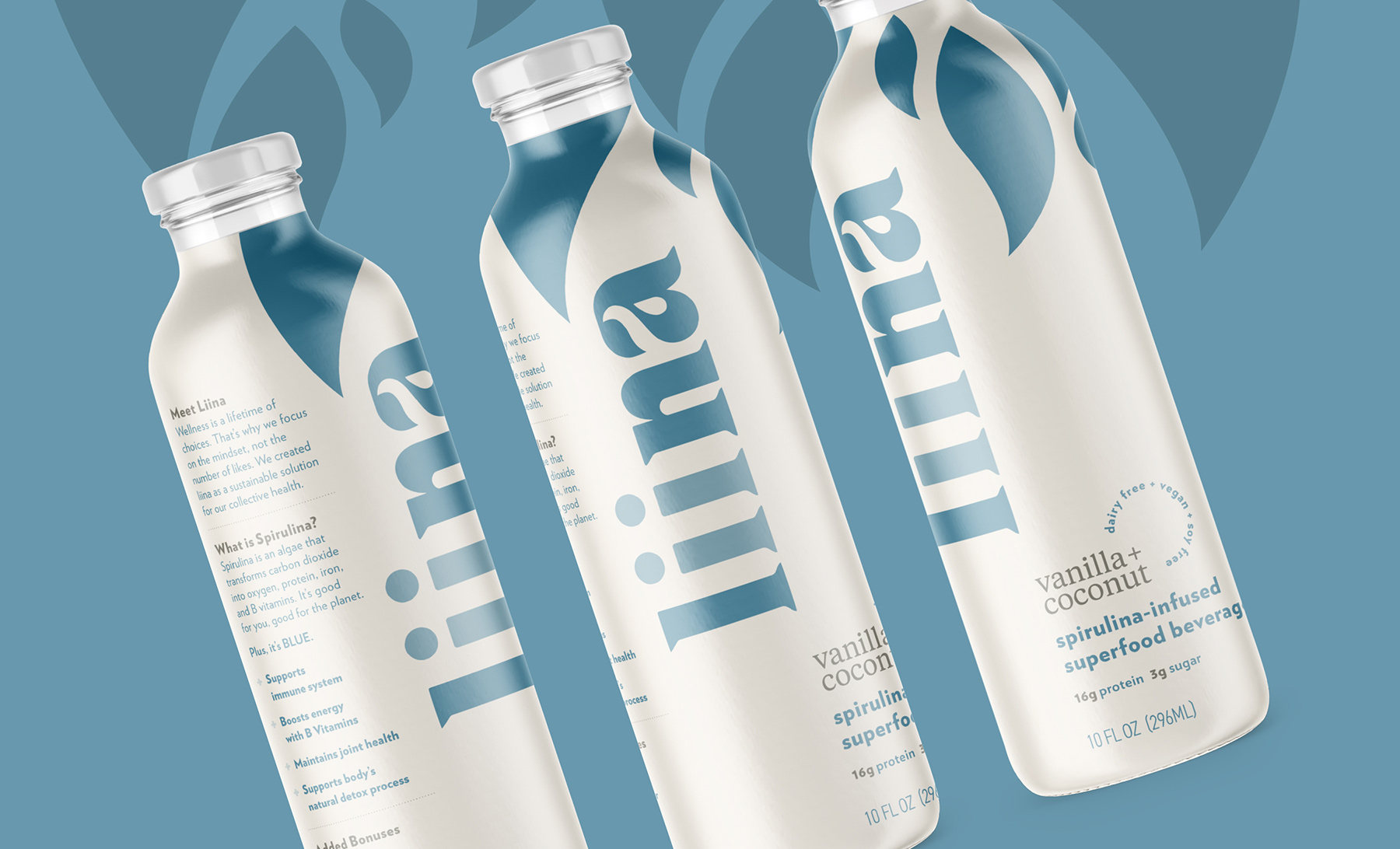 Liina, a spirulina-based protein drink approached Watermark with a clear vision - creating a beverage that’s good for you and for the planet, and one that supports body positivity, wherever you might be on your journey to heath. Along with spirulina's numerous health benefits, it also eats carbon dioxide and produces oxygen. We developed a brand that visualizes the ethos of Liina - healthy, fresh, friendly, and ready to support your health.