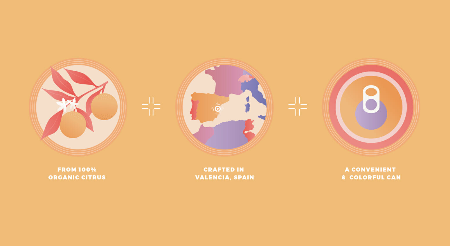 Tarongino is a fun, fresh, sparkling canned wine made from 100% organic oranges. The oranges are picked from the Mencheta family’s fifth generation goes and is crafted in Valencia, Spain. Challenged with introducing this unique wine, made from oranges, to the United States, we wanted to be sure the packaging reflected both the taste of the wine, as well as the feeling of being in the Mediterranean. The Tarongino package design evokes the azure seas, the oranges and pinks of the fruit, and the warm sunsets together into a can that easily travels for leisurely picnics, brunches, pool days and happy hours.
